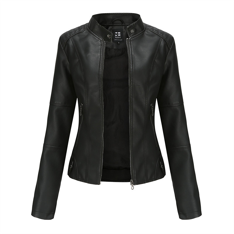 Women's Faux Leather Jacket Biker Jacket Waterproof Windproof Zipper Pocket Modern Outdoor Casual Street Style Plain Christmas Outdoor Street Daily Wear Zipper Stand Collar Regular Fit Long Sleeve