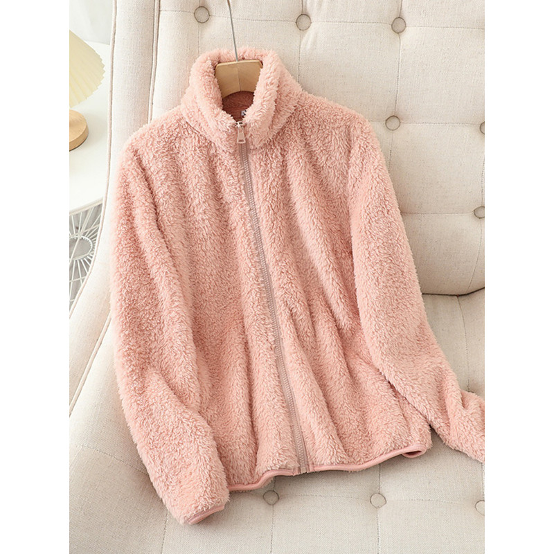 Women's Sherpa Jacket Comfortable Breathable Zipper Pocket Casual Plain Vacation Street Casual Daily Wear Zipper Regular Stand Collar Loose Fit Long Sleeve Outerwear Deep Purple Black Pink Spring Fall