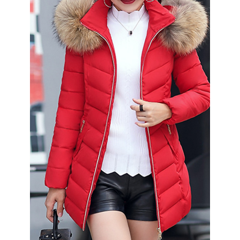 Women's Casual Jacket Warm Comfortable Fur Trim Zipper Pocket Fashion Outdoor Plain Going out Weekend Zipper Regular Hooded Regular Fit Long Sleeve Outerwear Black Pink Red Fall Winter