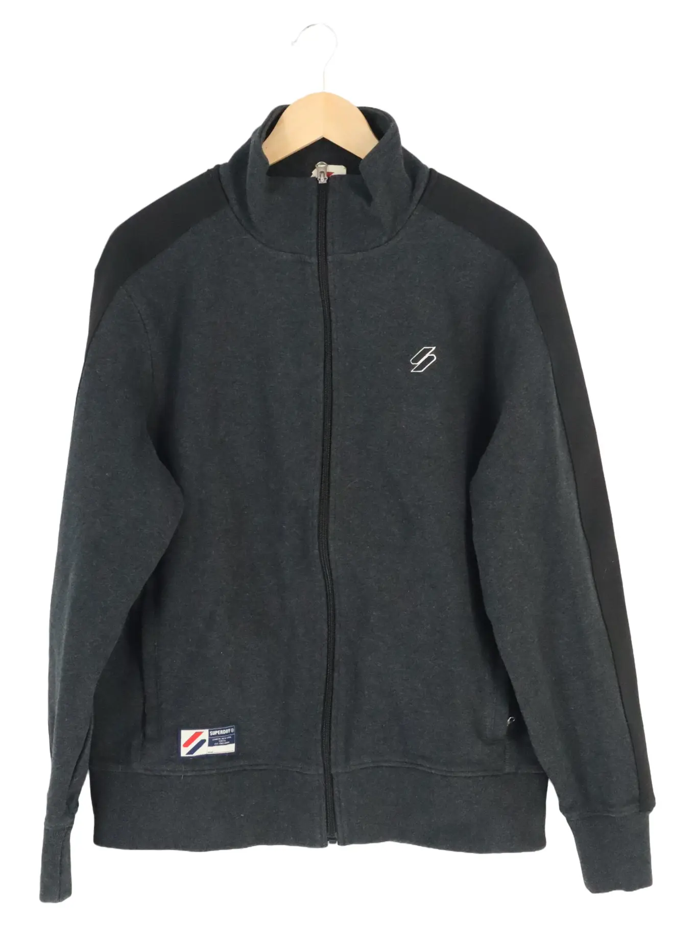 SUPERDRY Sweatjacke Herren L Dunkelgrau Zipper Casual Sportlich