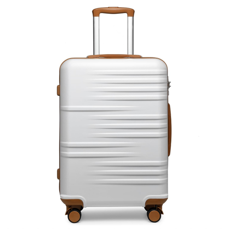 British Traveller Medium Size Suitcase Durable PC Hard Shell Luggage Suitcase Lightweight Check in Hold Luggage with 4 Spinner Wheels TSA Lock YKK Zipper(24", 64cm White)