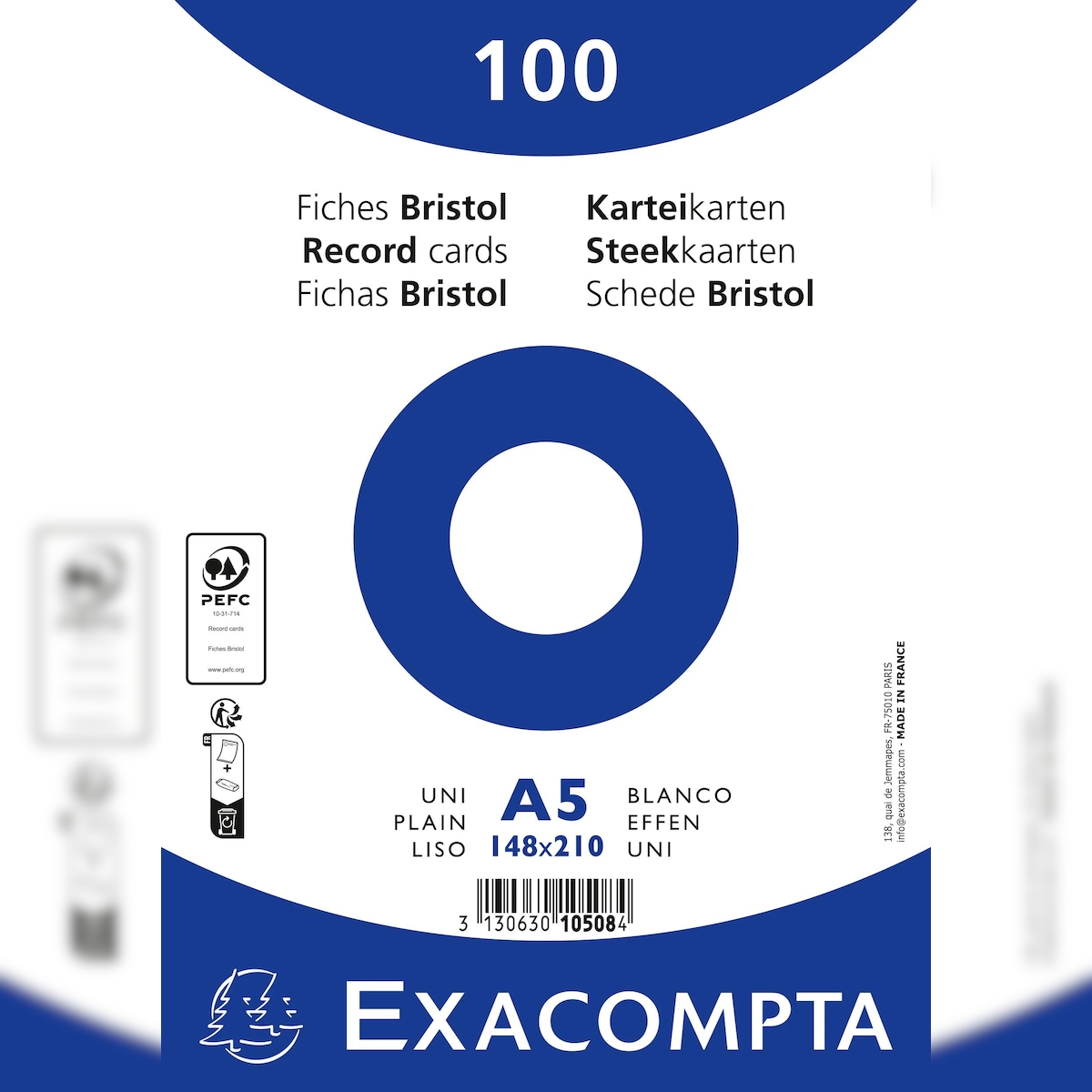 Exacompta 10508E 10x Karteikarten blanko DIN A5 100 St eingeschweißt - Weiß
