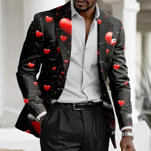 San Valentino Per uomo Cuore Giacca blazer Cappotto Di tendenza Confortevole Traspirante Artistico Casual Quotidiano Abbigliamento da sera Festival Stampa 3D Bottoni Stampato Tutte le stagioni