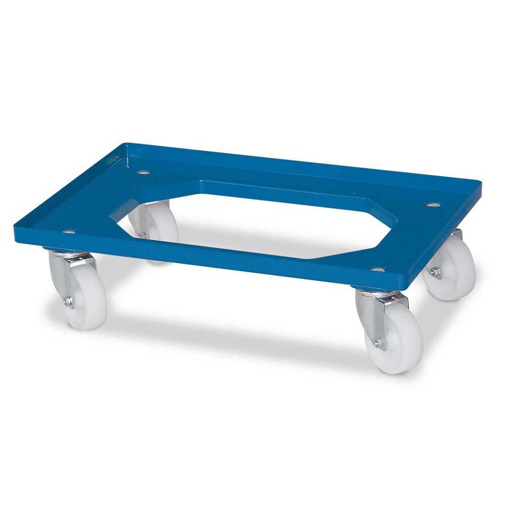 BRB Transportroller/Logistikroller, für Eurobehälter 600 x 400 mm, blau, weiße Kunststoffräder, Tragkraft 250 kg