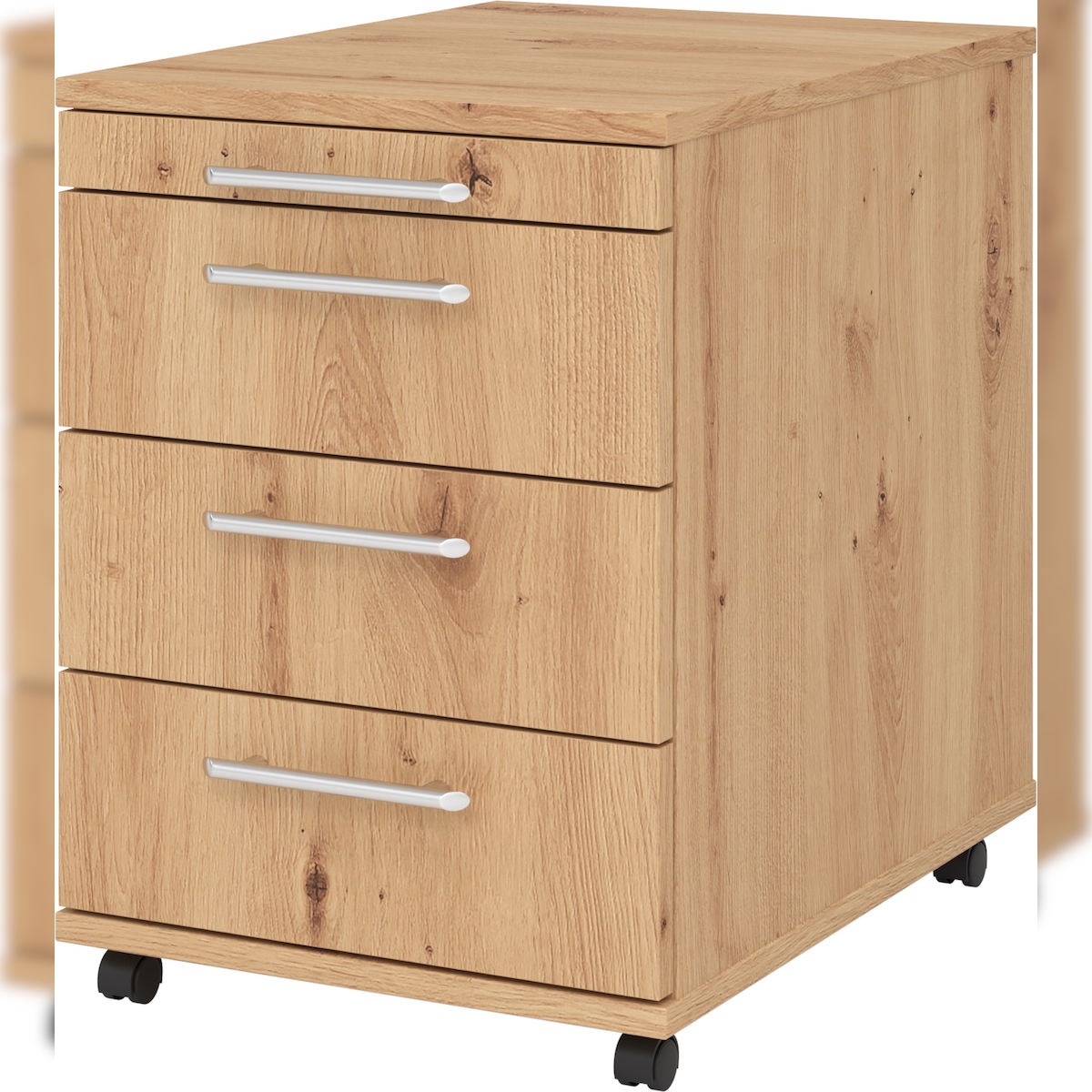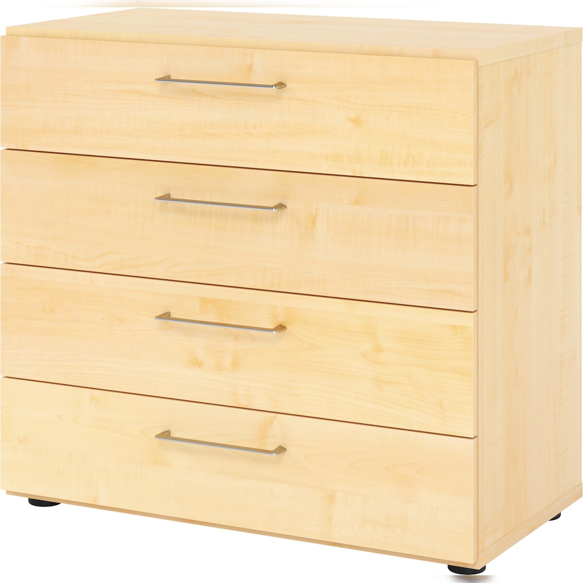 bümö smart Schubladenschrank, Büroschrank 80cm breit in Ahorn mit 4 Schüben - Bürocontainer aus Holz, Container mit Metallgriffen & Soft-Stop