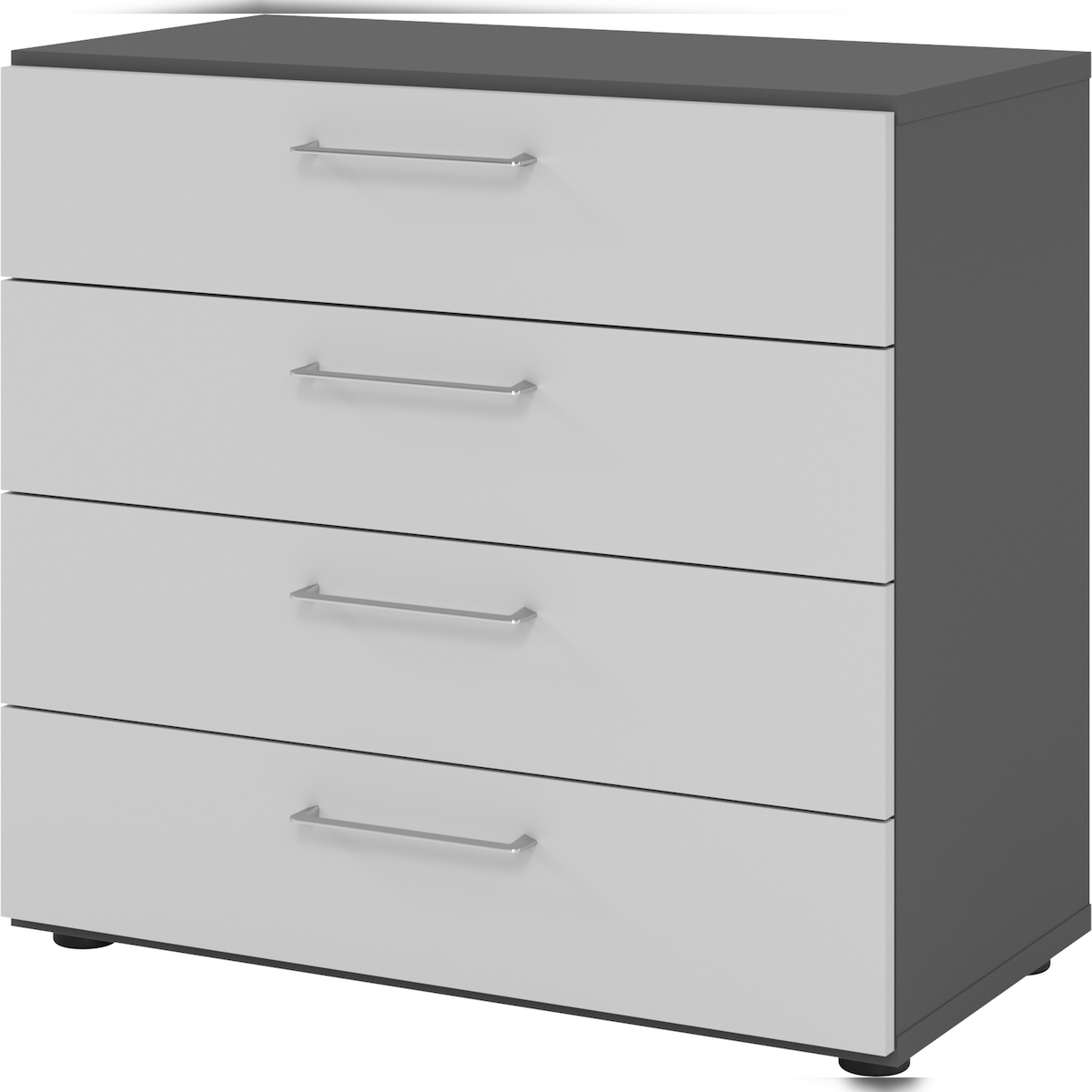 bümö smart Schubladenschrank, Büroschrank 80cm breit in Graphit/Grau mit 4 Schüben - Bürocontainer aus Holz, Container mit Metallgriffen & Soft-Stop
