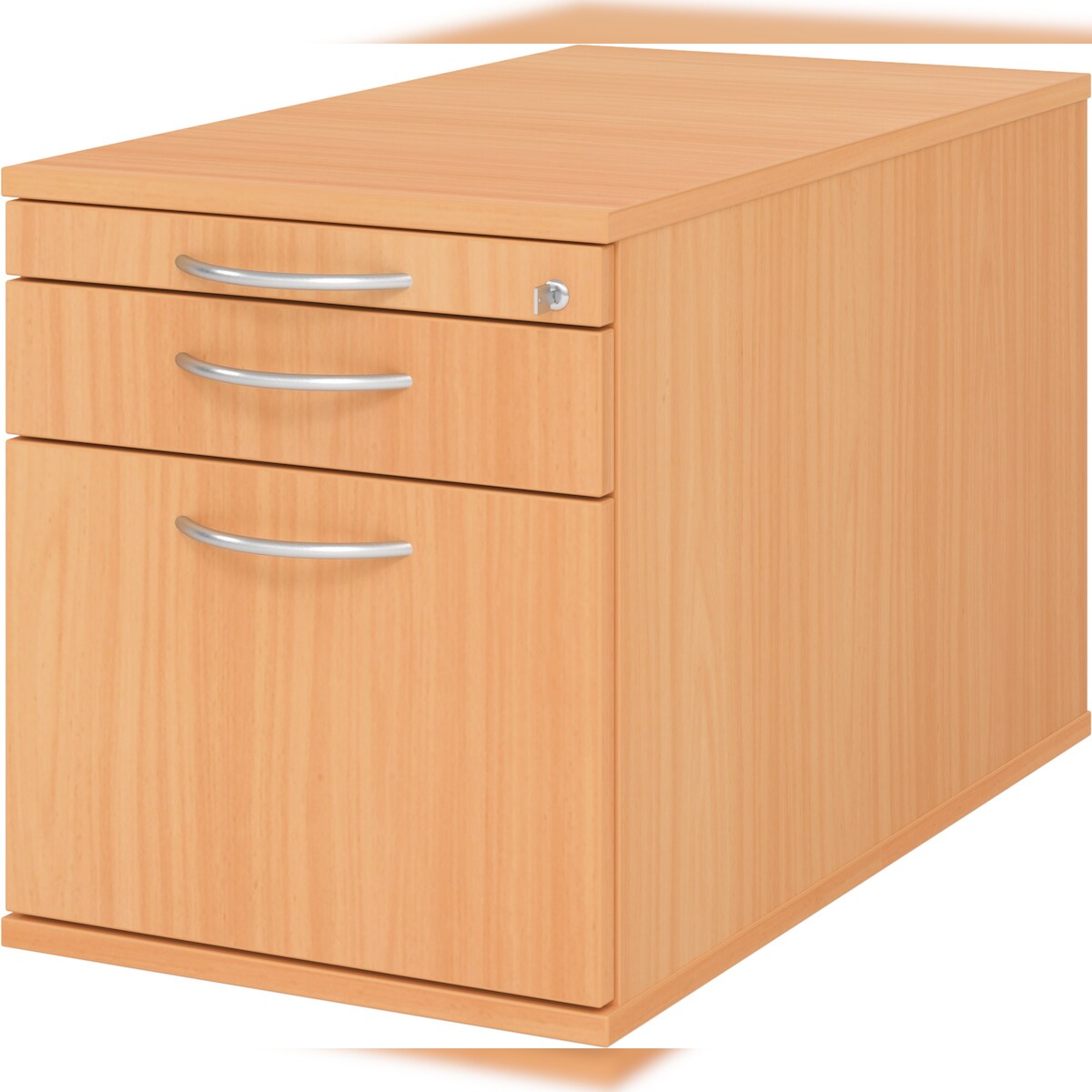 bümö Rollcontainer mit Hängeregister für Hängeordner, Container abschließbar in Buche - Rollwagen mit Hängeregistratur als Schreibtisch Unterschrank