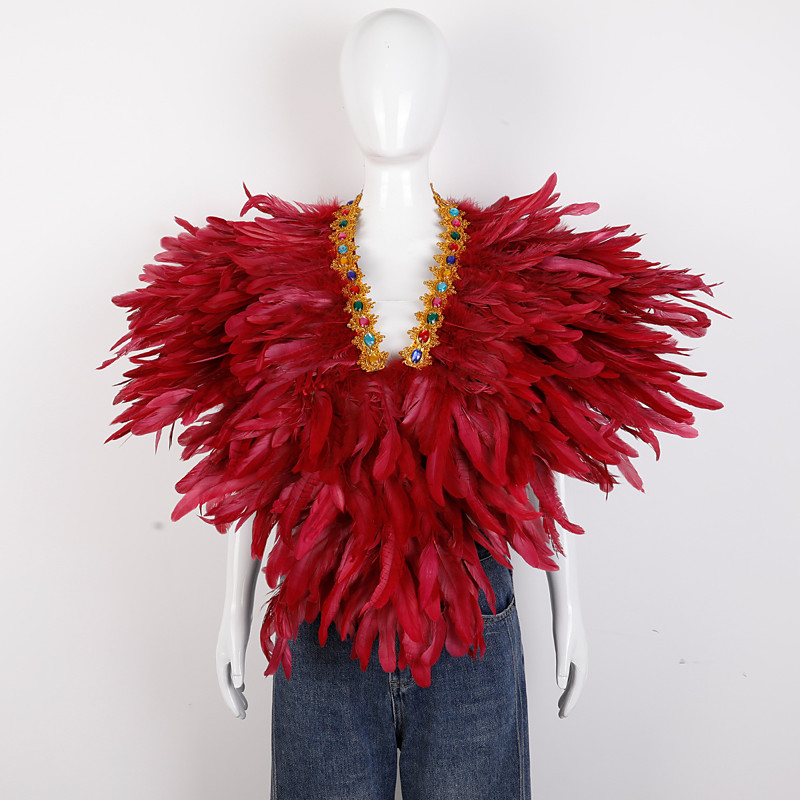 Carnival 2026Rio Carnival Samba Accessories Gothic Natural Feather Cape Shawl Shoulder Wrap Lace Collar Halloween Costumes for Women Brazil Festival Performance Costume