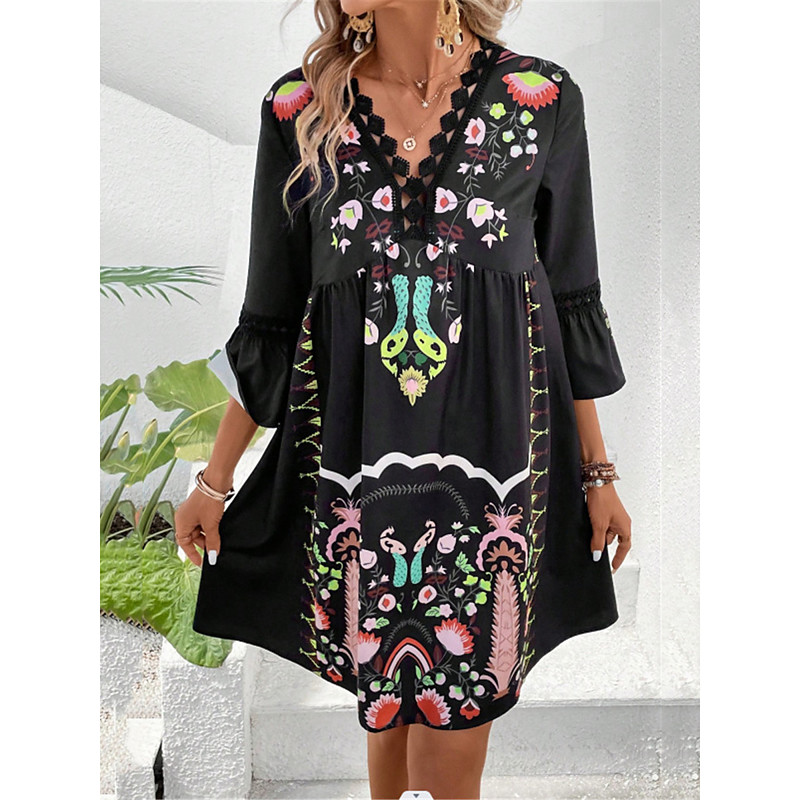 Women's Mini Dress Petite Dress Casual Dress Summer Dress Boho Dress Stylish Casual Vacation Daily Date Regular Fit Floral 3/4 Length Sleeve V Neck Black Red Fuchsia Apricot Summer