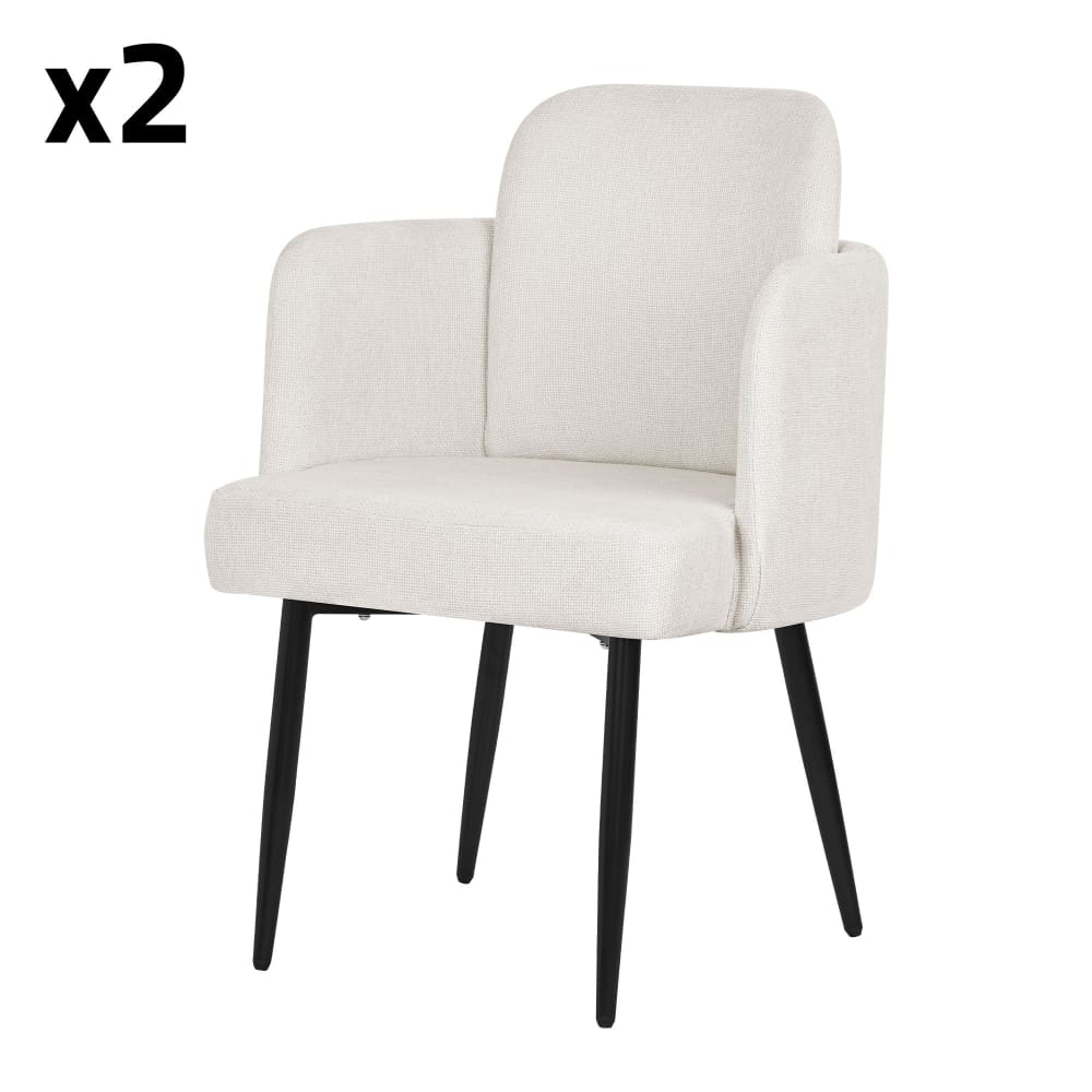 Set di 2 sedie da pranzo ergonomiche beige con schienale in rattan