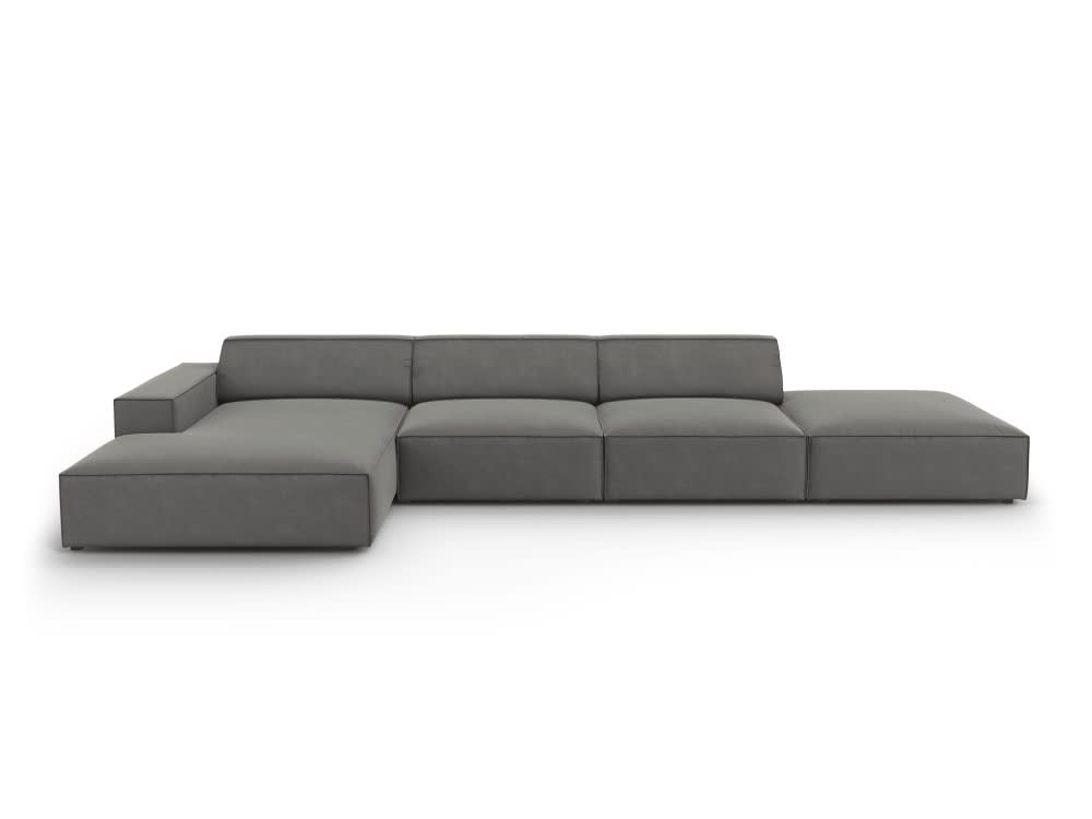 Divano angolare sinistro 5 posti in velluto, grigio chiaro