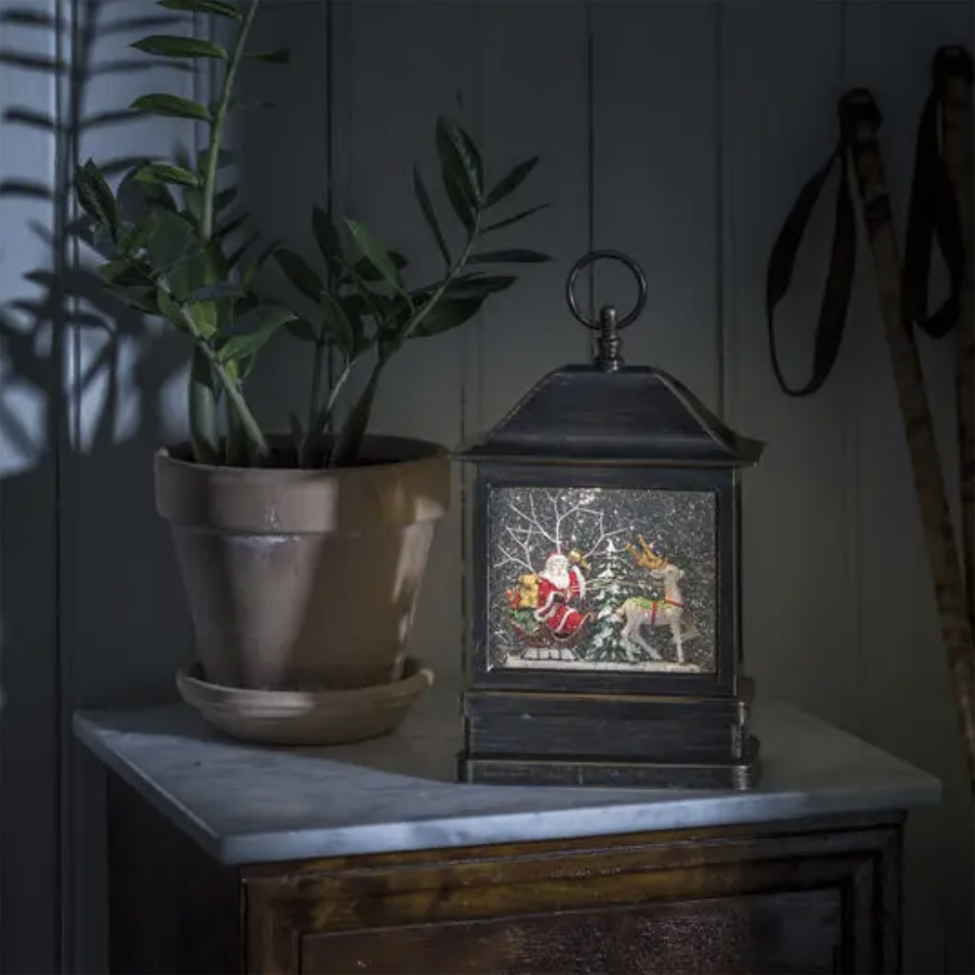 Konstsmide Christmas lights - lanterne de neige avec le Père Noël et l'élan sur piles - 17,5 x 8,5 x 25 cm - marron