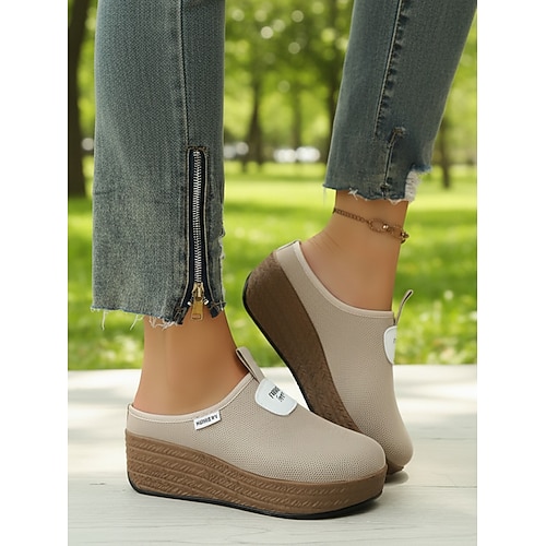 mules slip-on da donna in rete traspirante bianca - scarpe sportive athleisure con suola a zeppa per commissioni quotidiane, viaggi e stili di vita attivi