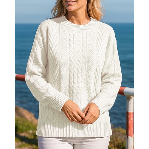 Per donna Top casual Pullover Maglione Maglia a trecce Manica Lunga Top Athleisure Autunno Tinta unita Caldo Di tendenza All'aperto Viaggio Sportivo abbigliamento sportivo Abbigliamento sportivo Blu