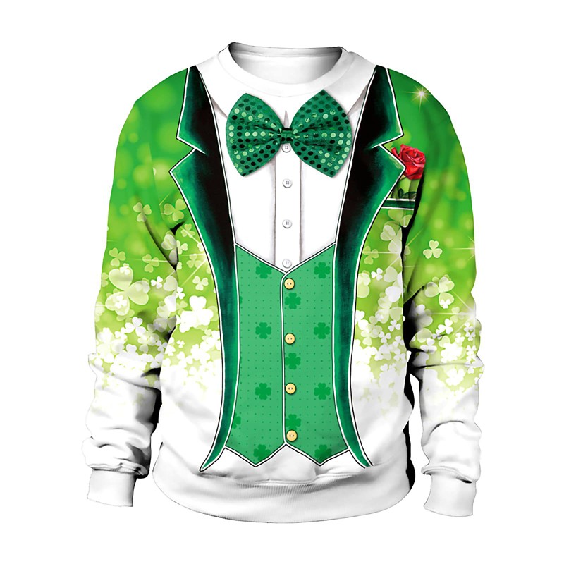St.Patrick's Day Men's Hoodie Sweatshirt 3D Print Saint Patrick Day Crew Neck Party Street 3D Print Long Sleeve Tops Ethnic Style Lightweight Casual Nostalgic A B