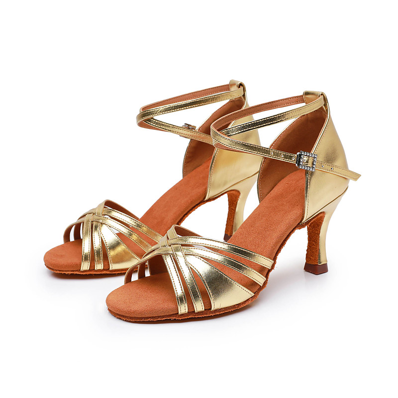 Women's Bronze Satin Latin Dance Shoes – Strappy Ballroom Sandals with Suede Sole Adjustable Ankle Strap for Salsa Performance