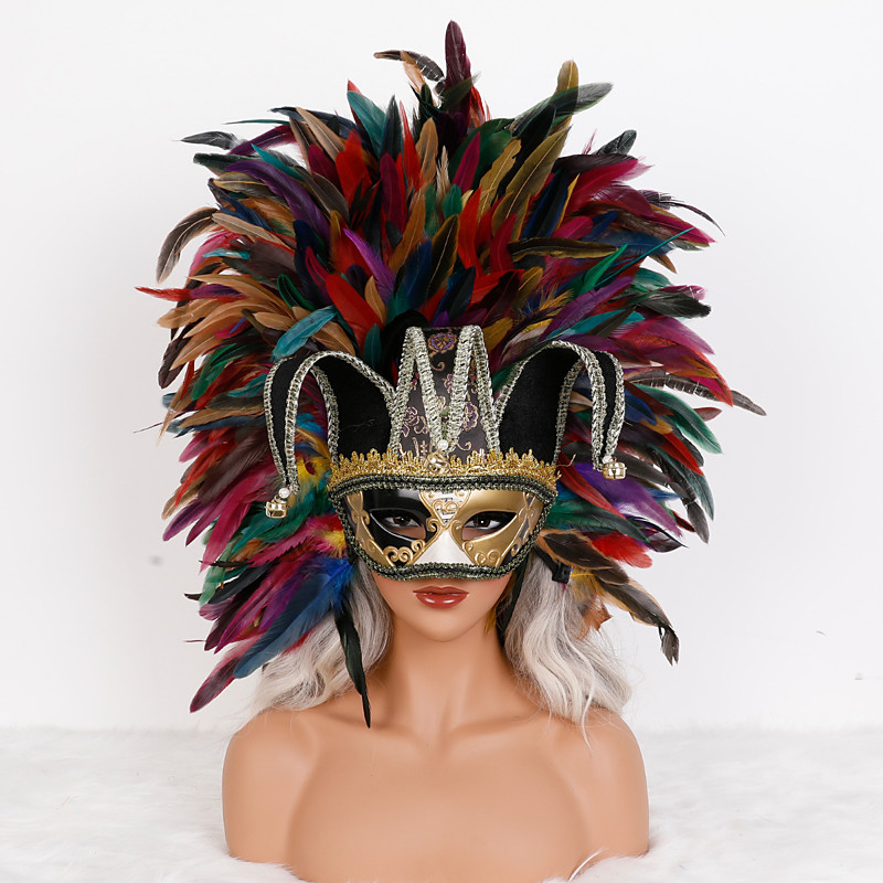 Carnival 2026 Carnival Mask Jolly Clown Venetian Carnival Mask Venetian Mask Feather Adults' Women's Halloween Carnival Mardi Gras Carnival Party Carnival of Venice Easy Carnival Costume Dress Up