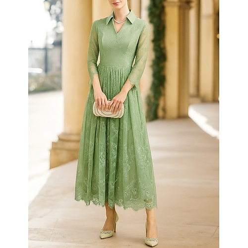 Linea ad A Lunghezza Tè Vestito da Festa Abito da Cocktail Abito da invitata a nozze Abito da cerimonia per signora Manica 3/4 Scollo a V Elegante Formale Serata Formale Ricevimento di matrimonio