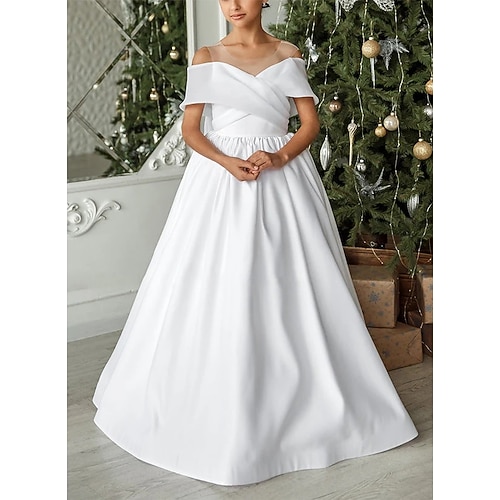 Linea ad A Lunghezza al pavimento Abito da damigella d'onore bambina Prima comunione Ragazze Abito da ballo carino Raso con Fiocco/Fiocchi Elegante Misura 3-16 anni