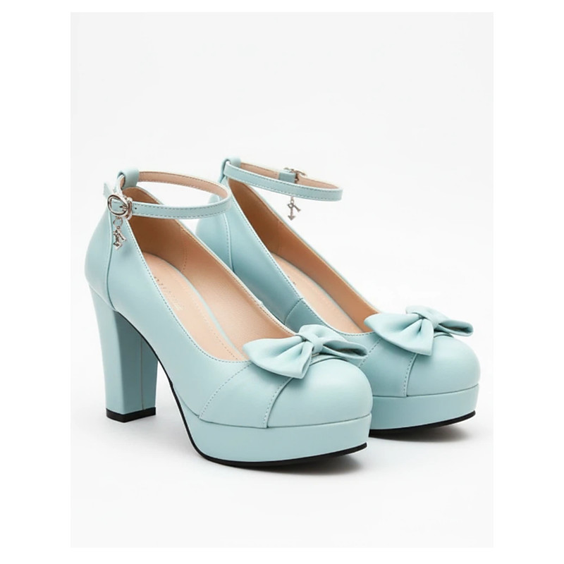 White Platform Bridal Heels with Bow – Chunky Ankle Strap Shoes for Elegant Weddings