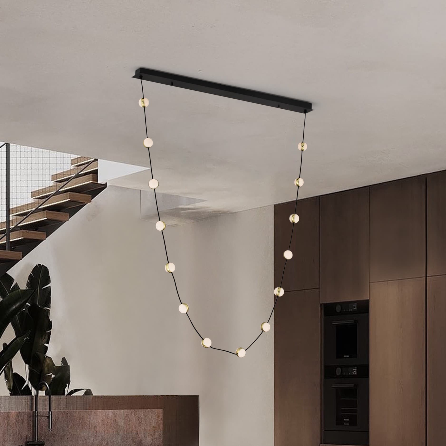 Nova Luce Alcinoe - hanglamp - 10 x 160 x 127 cm - 46W dimbare LED incl. - mat zwart en goud