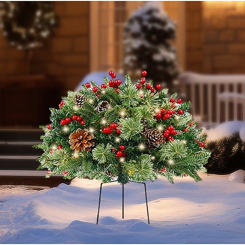 decorazioni pre-illuminate per albero di Natale da esterno da 24 con luci, cespugli pre-illuminati con telecomando, riempitivo per urna natalizia per portico anteriore, giardino, decorazioni per le