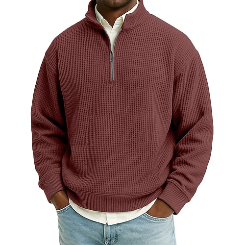 Per uomo Maglia Felpa a nido d'ape Felpa con cappuccio Maglione Felpa con cappuccio abbottonata Blu Aalbicocca Nero Bianco Rosso Colletto Mao Semplice Tasca a marsupio Testurizzato Casuale Quotidiano