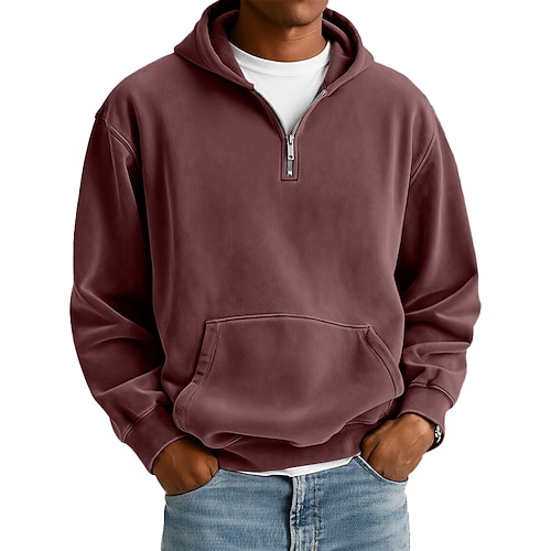 Per uomo Felpa con cappuccio Felpa con cappuccio e zip corta Rosso bordeaux Nero Verde chiaro Rosa Verde militare Con Cappuccio Semplice Tasca a marsupio Casuale Quotidiano Sport Outdoor Vintage