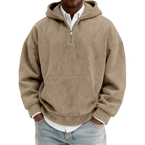 Per uomo Felpa con cappuccio Felpa con cappuccio e zip corta Aalbicocca Rosso bordeaux Nero Verde chiaro Blu marino Con Cappuccio Semplice Tasca a marsupio Casuale Quotidiano Sport Outdoor Vintage