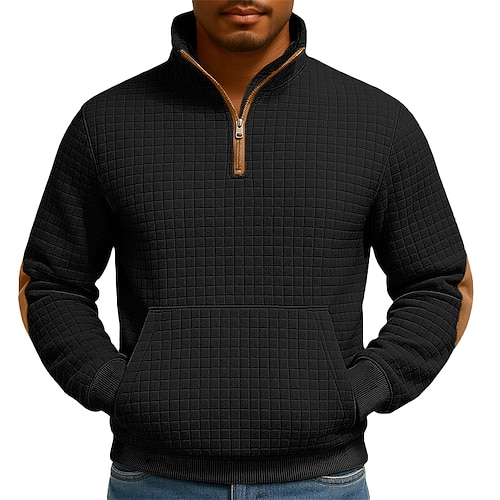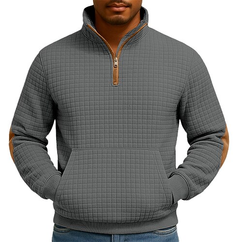 Per uomo Maglia Felpa a nido d'ape Felpa con cappuccio Maglione Felpa con zip corta Nero Bianco Blu marino Cachi Grigio chiaro Colletto Mao Semplice Patchwork Tasca a marsupio Testurizzato Casuale