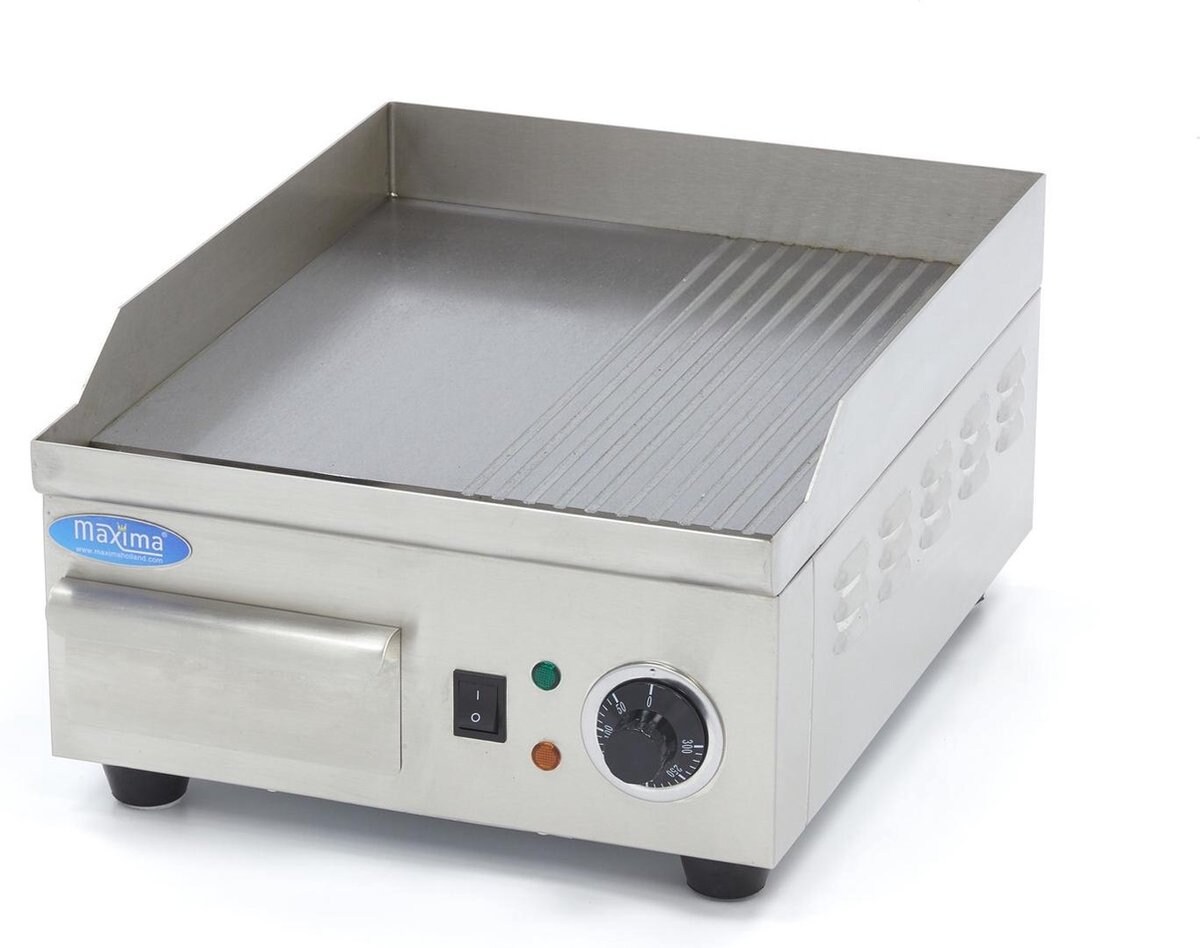 Grillplatte - Halb-gerillt - 36cm - mit Fettauffangschale - - Maxima Maxima