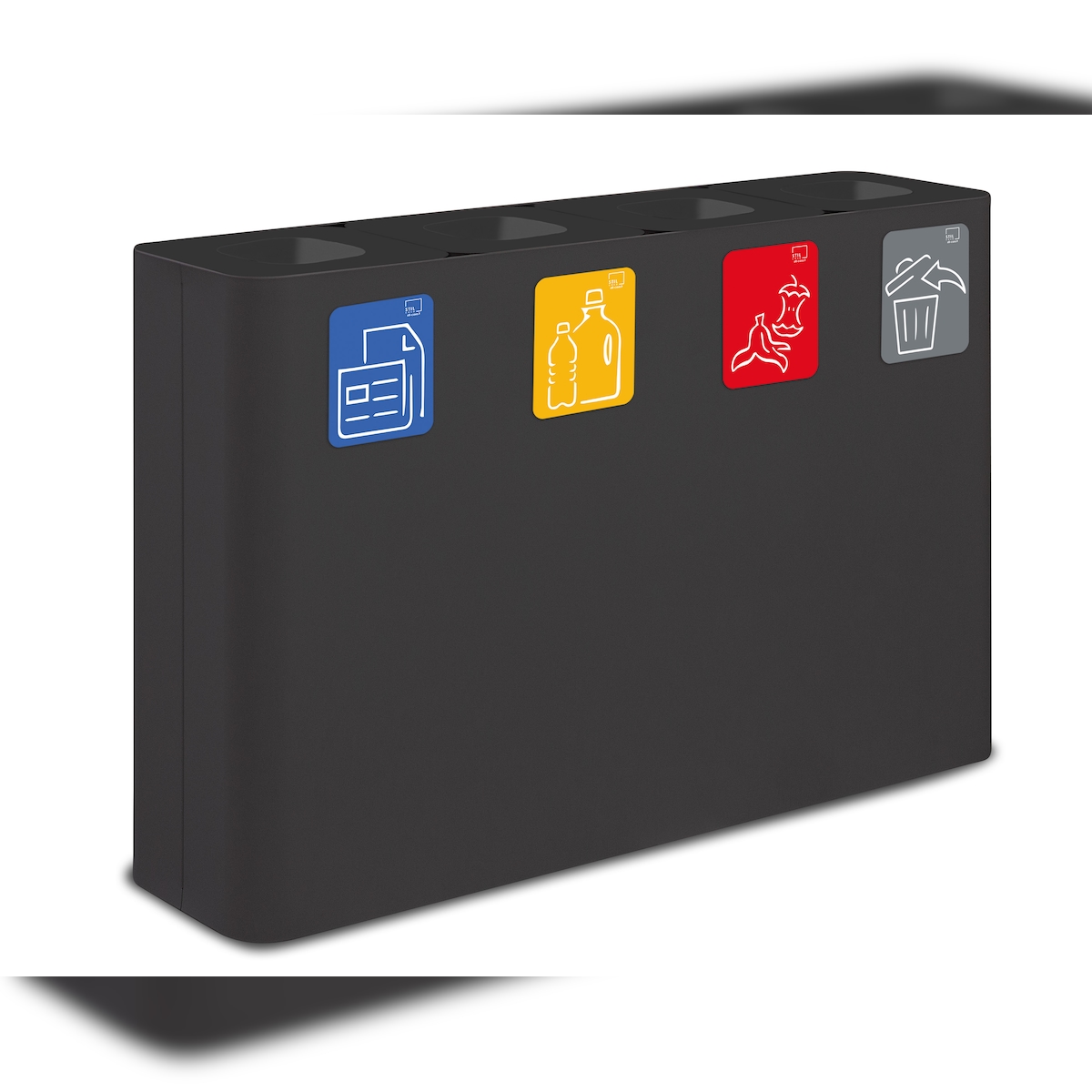 Stil Casa PURE Abfallsammelsystem, lackierter Stahl, 120x30xh. 80 cm, 240 Liter mit vier Fächern zu je 60 Litern, schwarz.
