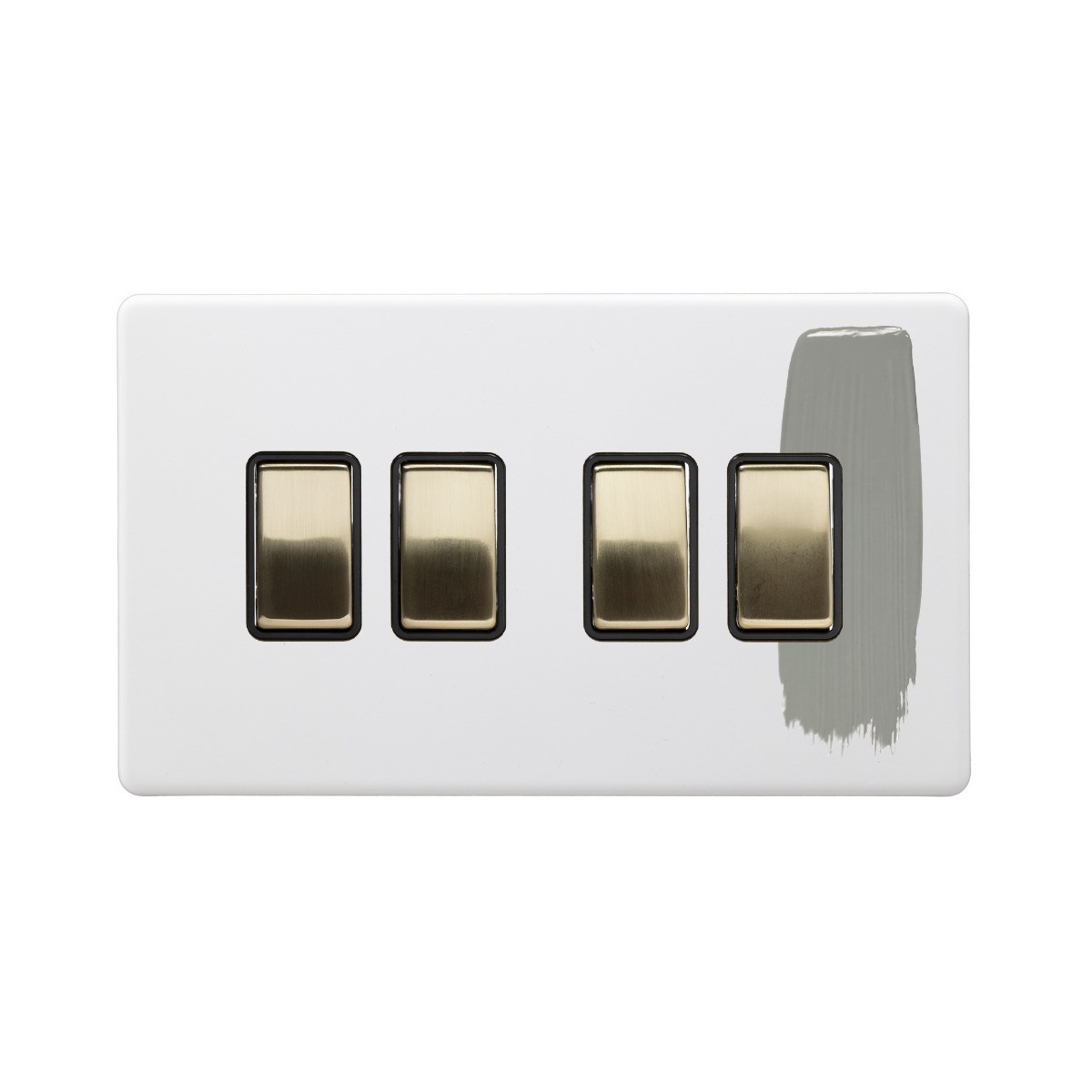 Soho Lighting Primed Paintable 4 Gang Intermediate switch with Brushed Brass Switch with Black Insert - Size: H 86mm X W 146mm X D 4.5mm