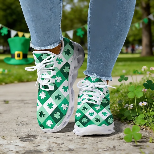 scarpe da ginnastica sportive da donna con stampa trifoglio per San Patrizio: scarpe da passeggio leggere e ammortizzate per abbigliamento casual, sfilate, attività all'aperto e celebrazioni natalizie