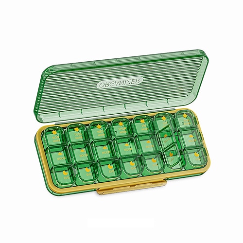 Portapillole settimanale da 7 giorni, organizer portatile per medicinali con 14/21 scomparti, portapillole da viaggio antiumidità per l'uso quotidiano, comodo contenitore per la conservazione dei