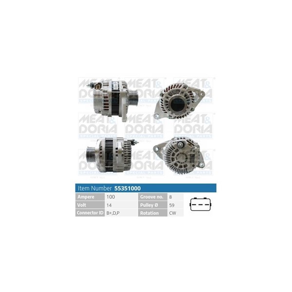 Laturi 14V 100A Meat & doria 55351000 - mazda 3, 3 sedan, 6 hatchback, 6 kombi, 6 sedan, cx-7 - OE A002TJ0681, A002TJ0681A, A2TJ0681