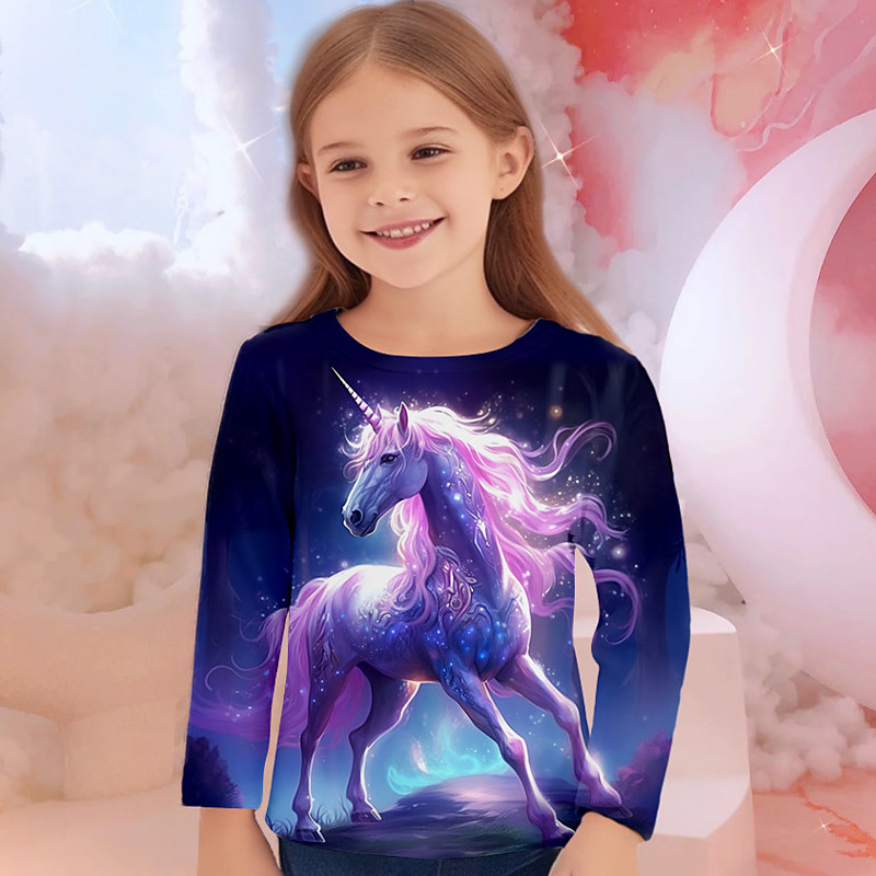 Girls' 3D Unicorn Tee Shirts Long Sleeve 3D Print Fall Winter Active Fashion Cute Kids 3-12 Years Crew Neck Outdoor Casual Daily Regular Fit