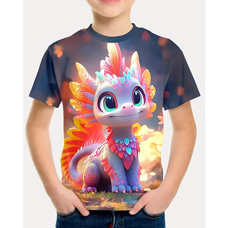 Boys 3D Graphic Animal Dragon T shirt Tee Short Sleeve Summer Spring Fashion Basic Kids 4-12 Years Crew Neck Outdoor Casual Daily Regular Fit