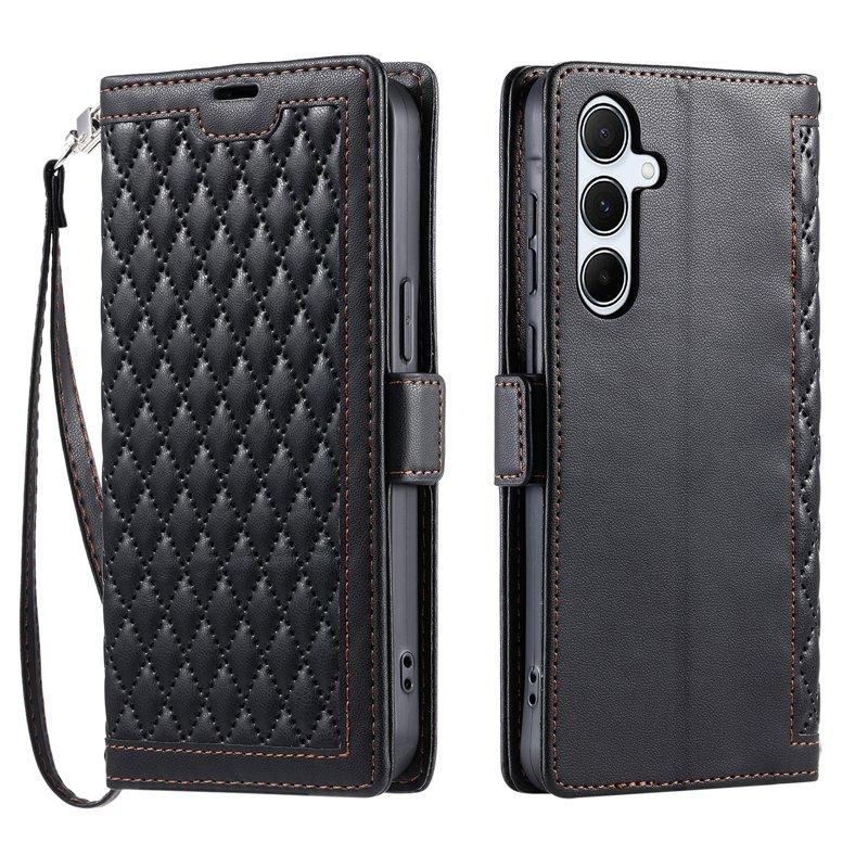 Samsung Galaxy S26 Plus Plånboksfodral Konstläder Rhombus Textur - Svart
