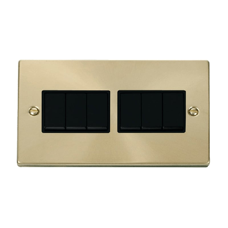 Click Deco 6 Gang 2 Way 10AX Switch Satin Brass Black Inserts