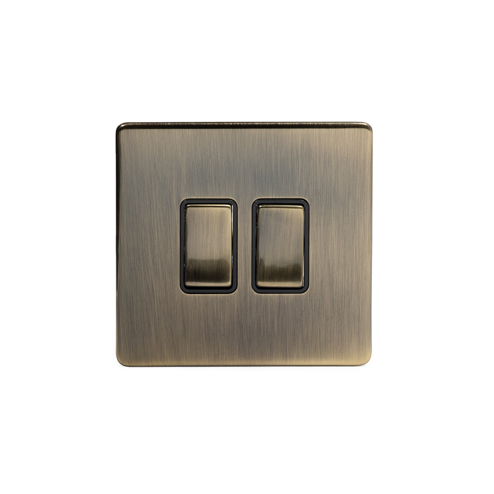 Soho Lighting Antique Brass 2 Gang Intermediate Switch Black Ins 10A Screwless - Size: 86mm x 146mm x 4.5mm