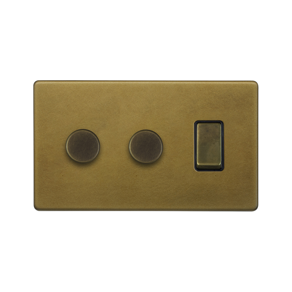 Soho Lighting Old Brass 3 Gang Dimmer and Rocker Switch Combo (2 x 2-Way Intelligent Dimmer & 1 x 2-Way Switch)