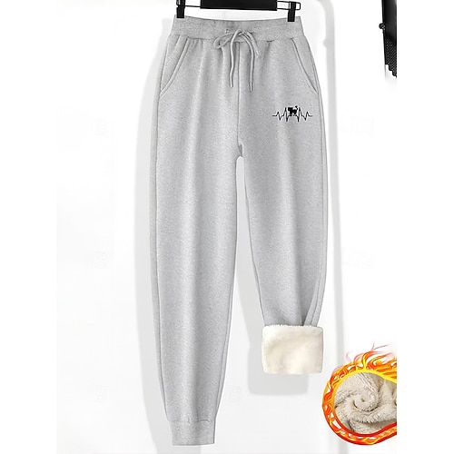 Per donna Pantaloni da tuta Vacanza Vintage Stile Etnico Lunghezza intera Vita Alta Cuore Coulisse Tasca Pile Calore Termico Antivento Comodo Micro-elastico Formale Vacanza Streetwear Rosa Grigio
