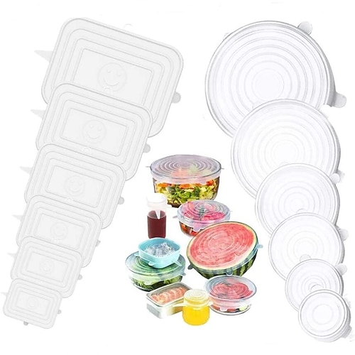 6 pz/12 pz coperchi elastici in silicone accessori per utensili da cucina in silicone riutilizzabile regolabile per frutta verdura coperchi contenitori contenitori per alimenti freschi