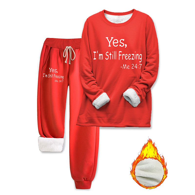 Women's 2 Pieces Daily Sweatshirt Fleece Pants Long Sleeve Crew Neck Letter Drawstring Print Casual Dark Pink Blue Gray Fall Regular Fit