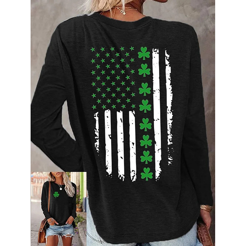 St. Patrick's Day Women's T Shirt Shamrock Stylish Classic Casual Long Sleeve Crew Neck Regular Tops Daily Print Black Green Gray Spring Fall
