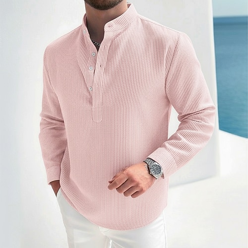 Per uomo Camicia Camicia popover Camicia casual Camicia di Seersucker Rosa Verde Azzurro Manica Lunga A righe Collo alla coreana Colletto Henley Casuale Quotidiano Abbigliamento Elegante Moda Casual