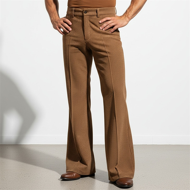 Men's Trousers Dress Pants Corduroy Pants Bell Bottom Flared Pants Pocket Plain Comfort Full Length Daily Business Holiday Vacation Fashion White Brown Inelastic