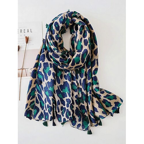 sciarpa con nappe e stampa leopardata da donna: morbida e leggera sciarpa oversize/scialle con frange, stile boho chic per autunno/inverno, outfit casual, ufficio, viaggi e regali