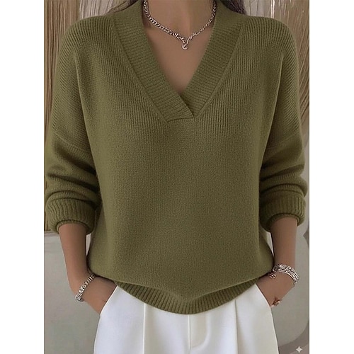 Per donna Felpa Elegante Moda Carino Tinta unica A Coste Scollo a V Lavorato a maglia Intrecciato Manica Lunga Top Regolari Maglia Formale All'aperto Casa Rosso bordeaux Rosa Primavera Autunno